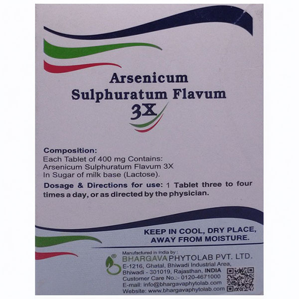 Bhargava Arsenicum Sulphuratum Flavum 3X – Tablets